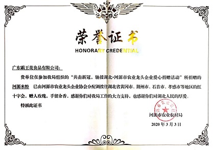 公司始終堅(jiān)持“用良心打造放心食品,以責(zé)任贏得社會(huì)尊重”的理念,熱心社會(huì)公益事業(yè),帶動(dòng)農(nóng)戶增產(chǎn)增收,積極回報(bào)社會(huì)——截止2022年底,先后為河源市新人民醫(yī)院、河源職業(yè)技術(shù)學(xué)院教學(xué)樓、東源縣東江中學(xué)、東源縣燈塔中學(xué)建設(shè)、河源“6.20”洪災(zāi),汶川“5.12大地震”、“6.30廣東扶貧濟(jì)困日”等各項(xiàng)公益事業(yè)捐款捐物達(dá)7000多萬(wàn)元,先后資助600名優(yōu)秀貧困學(xué)子完成學(xué)業(yè),累計(jì)安排1000多名下崗工人和退伍軍人再就業(yè),以“公司+基地+農(nóng)戶”的形式直接帶動(dòng)10000多戶農(nóng)戶增產(chǎn)增收,各種善舉贏得了社會(huì)各界的高度好評(píng)。