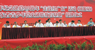 2011年6月2日,由團(tuán)省委、南方日?qǐng)?bào)社、省委黨史研究室主辦,團(tuán)河源市委、團(tuán)紫金縣委承辦的廣東省青少年紀(jì)念建黨90周年“走讀紅廣東”活動(dòng)(河源站)在紫金縣爾崧中學(xué)正式啟動(dòng)。省委黨史研究室巡視員陳弘君、團(tuán)省委副書(shū)記陳小鋒、市委常委、宣傳部部長(zhǎng)吳善平等領(lǐng)導(dǎo)出席了啟動(dòng)儀式,全國(guó)青聯(lián)委員、霸王花執(zhí)行總裁朱榮業(yè)受邀參加了此次活動(dòng)。儀式上,我市劉爾崧紀(jì)念館、阮嘯仙故居、黃居仁故居三處紅色遺址被共青團(tuán)廣東省委員會(huì)授予“廣東省青少年黨史團(tuán)情教育基地”。儀式結(jié)束后朱榮業(yè)總裁還參加